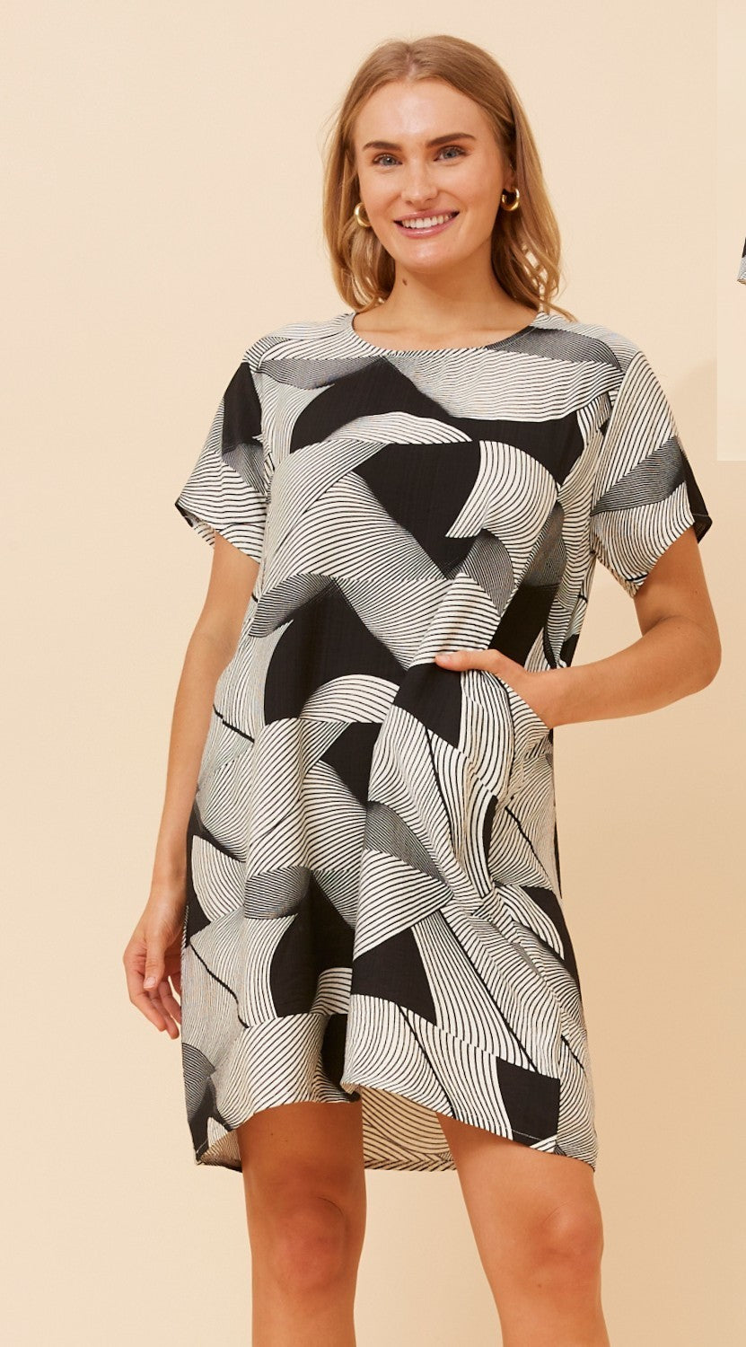 Slip into effortless style with this abstract shift dress—your new go-to for everything from beach days to casual outings. The lightweight fabric keeps you cool and comfortable, while the eye-catching print adds personality to any look. Whether you're packing for a getaway or just need something breezy to throw on, Trudy delivers laid-back charm that works harder than it looks. Simple, stylish, and ready for adventure!