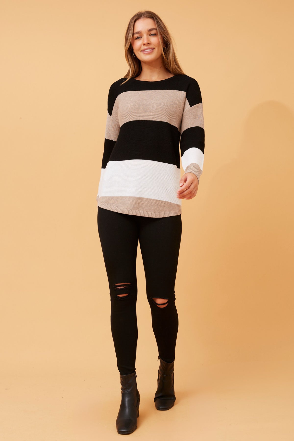 Harri Striped Knit Jumper. Beige/Black And Black/White